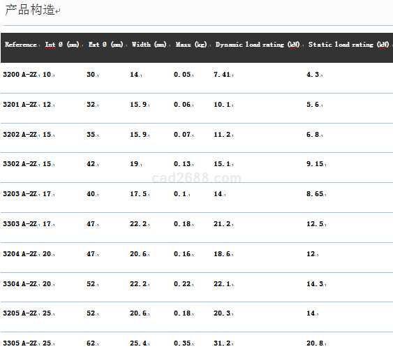 SKF带有一个屏蔽的双列角接触球轴承3D模型IGS格式模型内容及部分结构尺寸表如下: