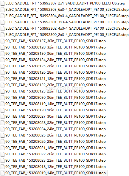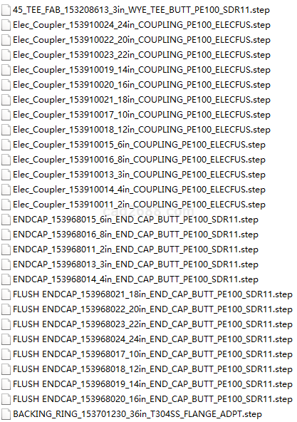 +GF+工程压力管道系统ECOFIT聚乙烯工业用英制管件3D模型汇总STP/X_T格式内容如下:
