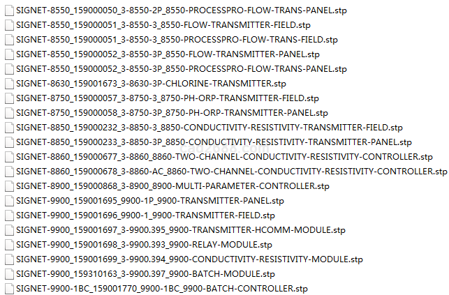 +GF+SIGNET传感器安装配件3D模型汇总STP/X_T格式部分内容如下: