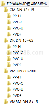 FIP隔膜阀3D模型IGS格式文件包括CM DN 12÷15、DK DN 15÷65、VM DN 80÷100、VMRM DN 8÷15系列全部模型文件、模型结构尺寸文件