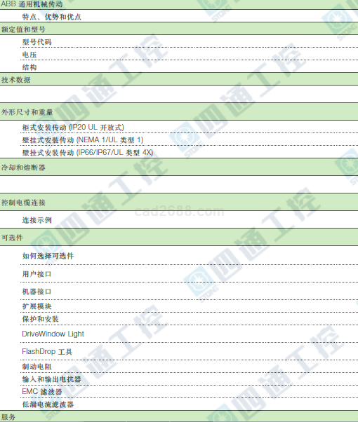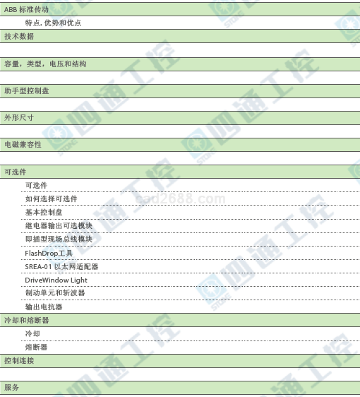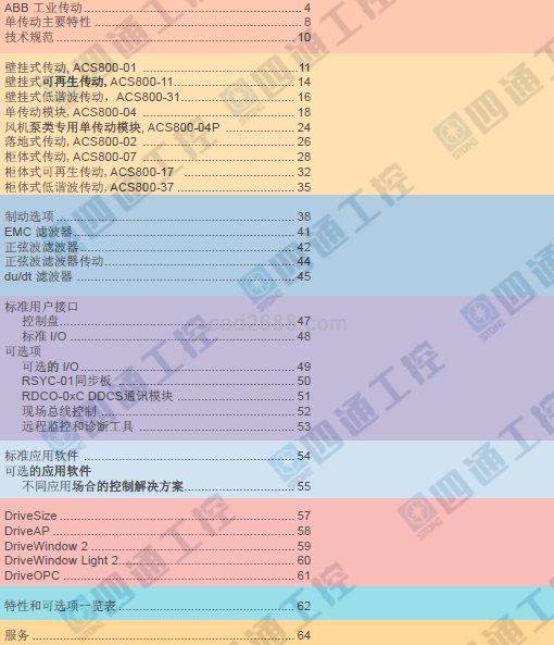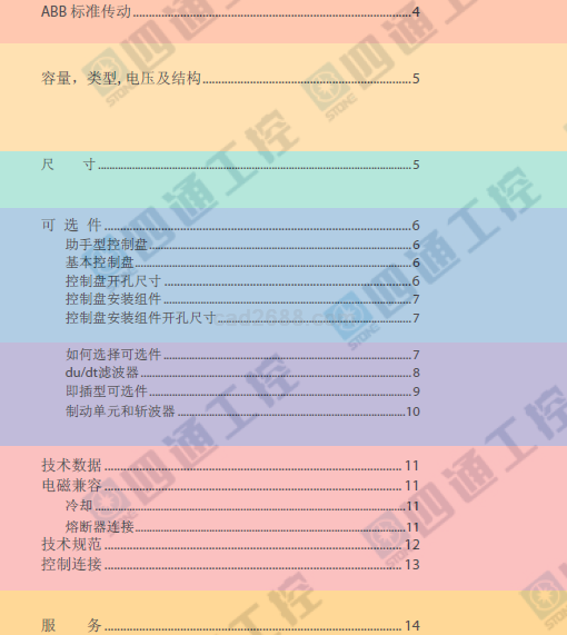 ABB传动设备样本PDF格式的内容目录列表及部分截图如下: