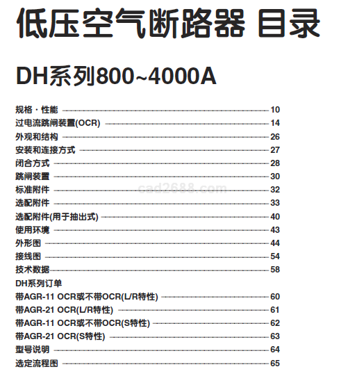 富士低压空气断路器DH系列选型资料PDF格式的内容目录列表及部分截图如下: