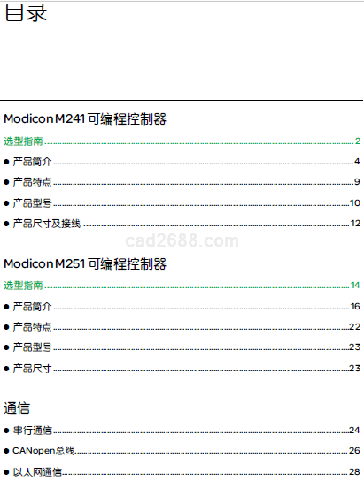 施耐德可编程控制器选型手册PDF格式部分内容截图如下: