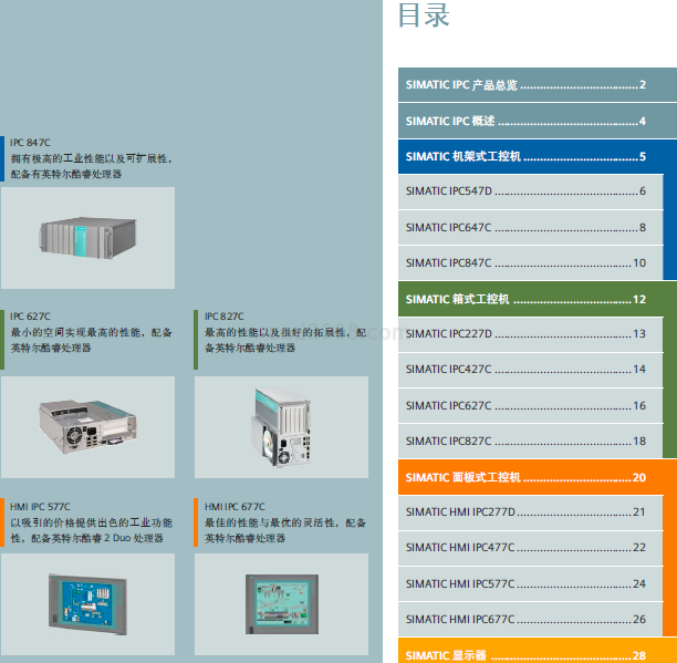 西门子工控机样本PDF格式产品部分内容截图如下: