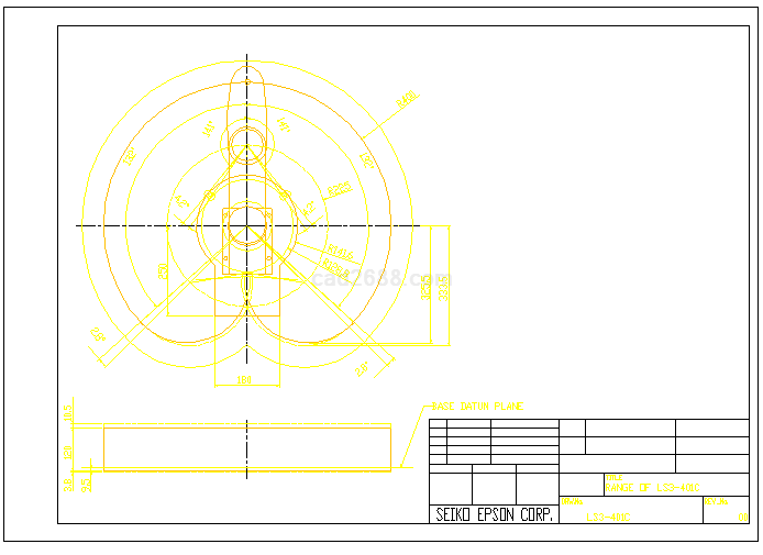 Epson爱普生SCARA机器人运动范围CAD图纸DXF格式产品为0元购产品,注册会员后,即可免费购买下载0元购产品,在订单详细信息中点击下载链接,下载该文件!