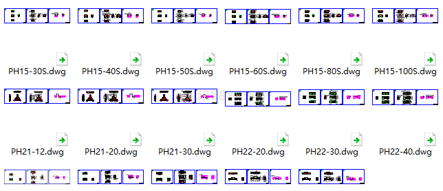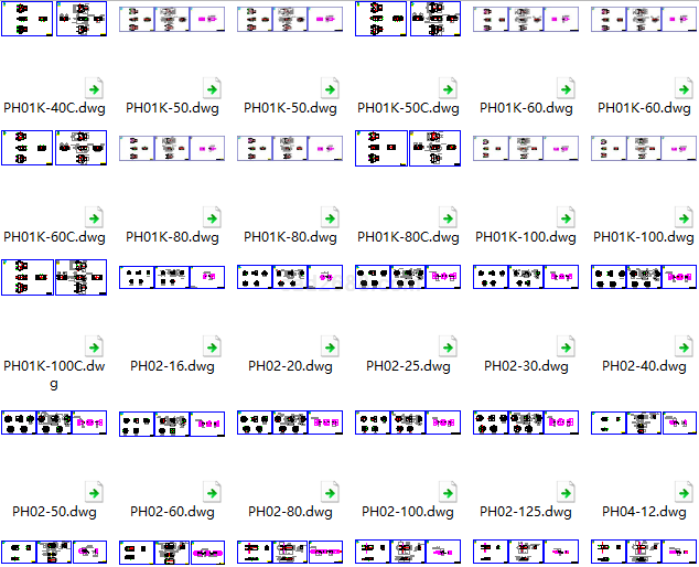 PROTEC气爪CAD图纸DWG格式113套图纸内容如下: