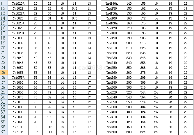 东晟密封件样本PDF_EXCEL格式包括的内容列表及部分截图如下: