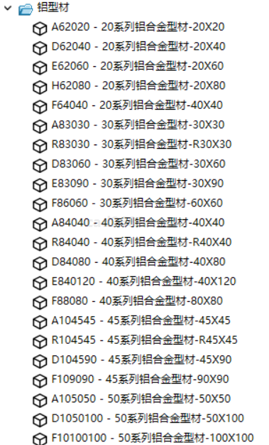 上隆铝型材3D模型库由东莞市上隆自动化科技有限公司建模制作,上隆铝型材3D模型库包括了各种铝型材模型文件,上隆铝型材3D模型库分类及内容截图如下: