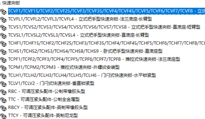 上隆快速夹钳3D模型库由东莞市上隆自动化科技有限公司建模制作,上隆快速夹钳3D模型库包括了快速夹钳类型及93套模型文件,上隆快速夹钳3D模型库分类及内容截图如下: