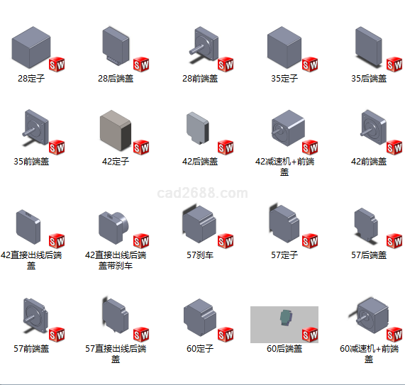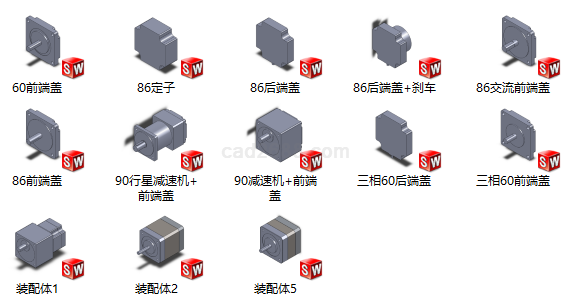 马达及零部件设计详图Solidworks格式部分内容截图如下: