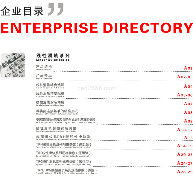 CHTR三环精密机械直线导轨丝杠模组样本包括的选型产品内容部分截图如下: