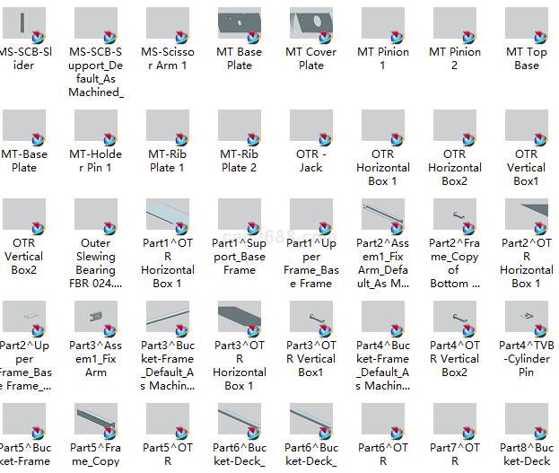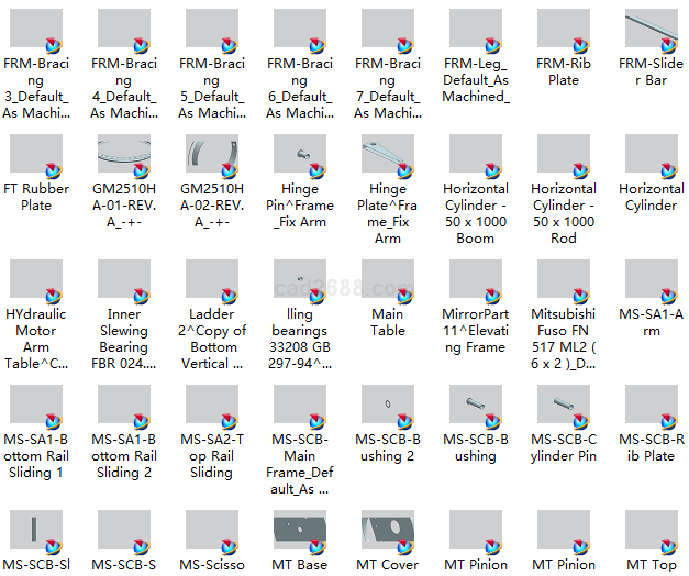 消防车-云梯车3D模型UG设计包括139个模型文件,格式为NX设计,用NX三维软件都可以打开调用编辑。