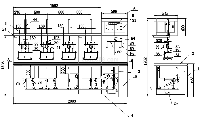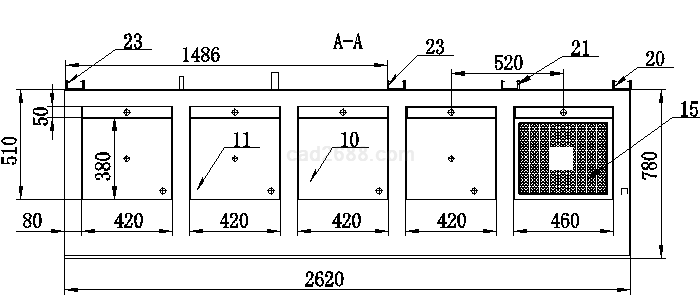 五槽手动超声波清洗机CAD图纸DWG格式内容如下: