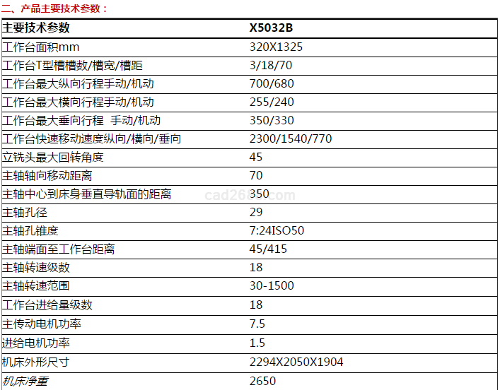 X5032立式铣床是一种强力金属切削机床,该机床刚性强,进给变速范围广,能承受重负荷切屑。
