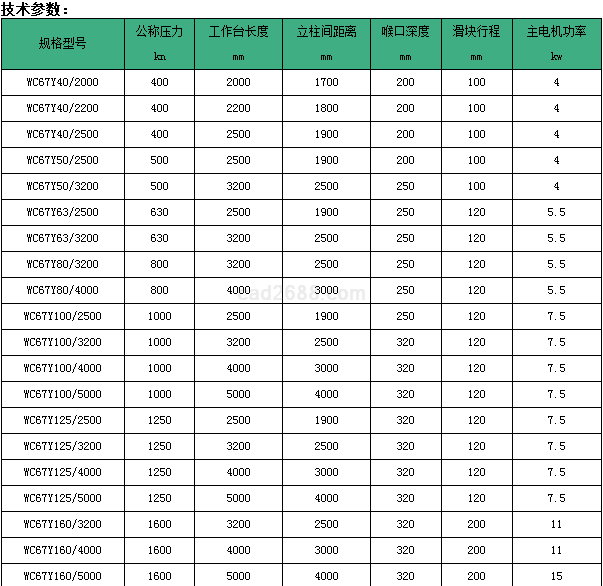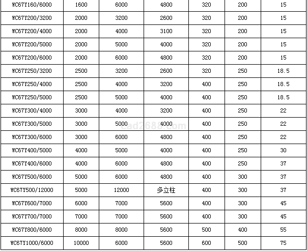 性能与特点: 主机选用WC67Y系列折弯机; 配电ESTUN或DELEM公司生产的折变机专用数控系统; 后挡料(X),滑块行程(Y)控制均由电脑自动控制; 后挡料采用普通丝杆和精密滚珠丝杆两种