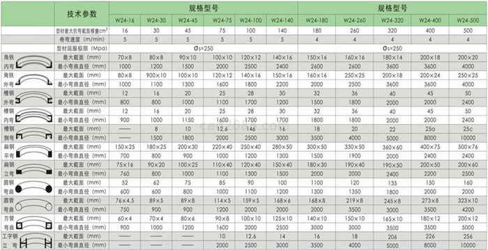 我公司生产的型材卷弯机是一种专用于卷弯角钢、槽钢、工字钢、扁钢、方钢、圆钢等各种异型钢材的高效加工设备,可一次上料完成卷圆、校圆工 序,广泛用在石油、化工、水电、造船及机械制造等行业。该机的两下辊为主传动辊,也可三个工作辊为主传动辊,两个边辊围绕固定回转中心作弧线升降运动,两侧设有托辊装置,有利于保证非对称截面型 材卷制质量。本机结构先进,工作可靠,体积小,功能齐全,是目前国内外先进的型材成型设备。机器可配置结构先进的通用或专用模具,该机操作方便、效率高,倍受用户欢迎。