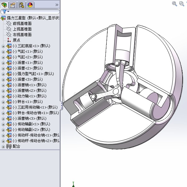 solidworks模型新三缸气缸装配体模型包括的零部件模型如下: