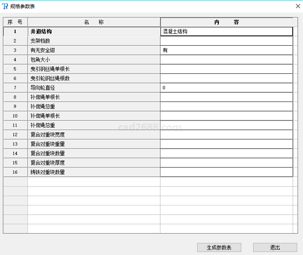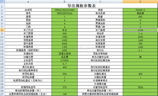 13.规格参数表,规格参数表主要用来确定各个部件参数及数量的,不同厂家参数不同,所输入的数据也不同,有的厂家也不需要此功能。规格参数表可以直接导出EXCEL文件,用户可以直接打印输出,如下图。