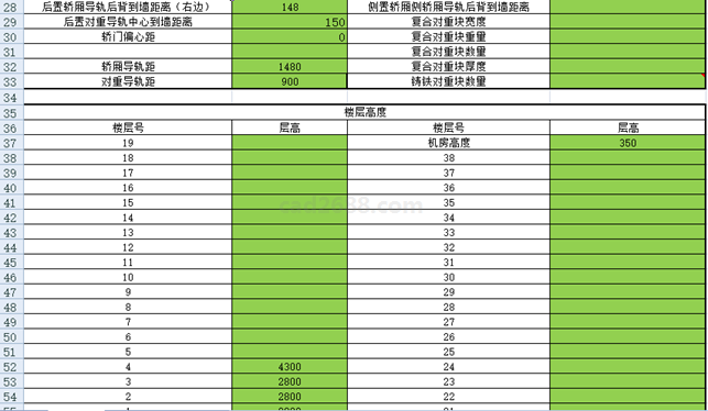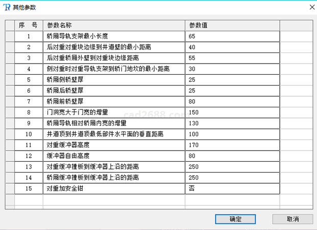 12.其它参数输入界面,为了安全设计生产,不同的厂家在设计电梯时,都有很多最小值设置、关键参数尺寸设置等,在其它参数界面中即可完成这些参数的设定,设定后系统会自动提取并计算,用来比对相关参数的输入合理性,不同厂家参数不同,如下图。