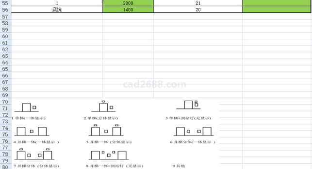 8. 在林肯电梯生成土建图的过程中,是需要生成立面图纸的,在软件界面中点击立面设计,系统会弹出立面数据输入对话框,在这里可以输入井道壁的结构、起始层号、楼层层数、底坑深度、顶层高度等所需要的参数,这些参数可以根据厂家的不同需要进行更改,不需要生产立面详图的厂家,可以根据需要生产简图。