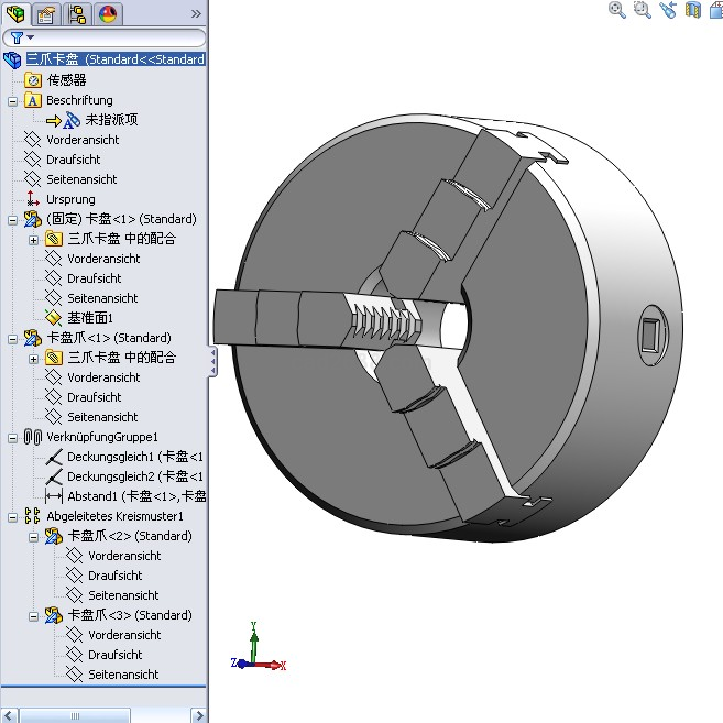 solidworks模型三爪卡盘装配体模型包括的零部件模型如下: