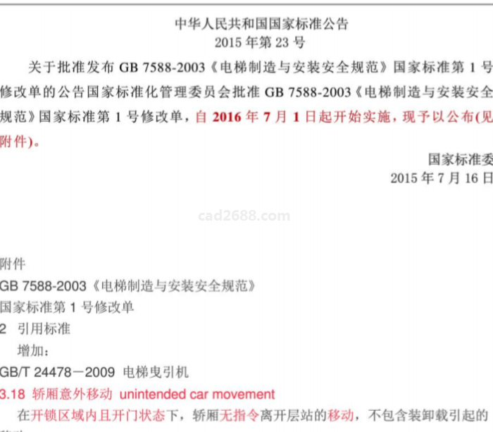 电梯标准 GB7588-2003(2015)电梯制造与安装安全规范(新版2016年7月1日实施)PFD格式为0元购产品,注册会员后,即可免费购买0元购产品,在订单详细信息中点击下载链接,即可下载该文件库!模型如下: