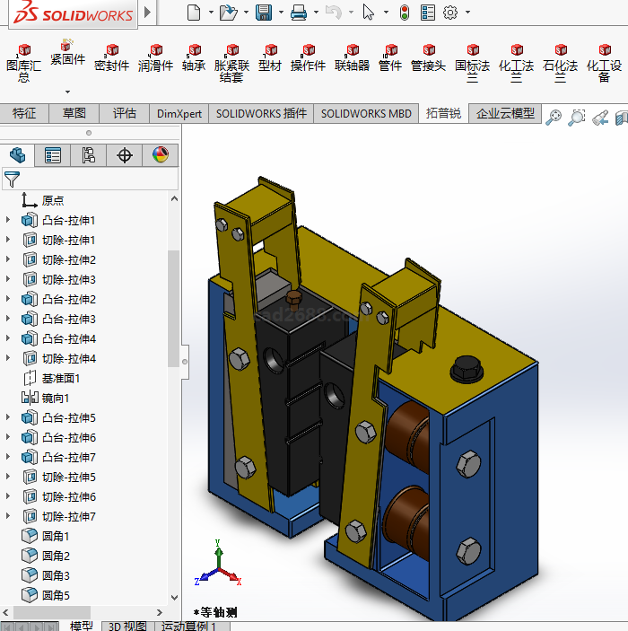 电梯安全钳BQ1500渐进式3D模型SolidWorks设计3D模型 如下