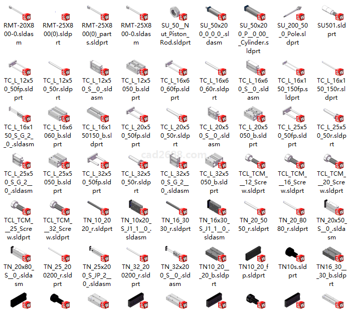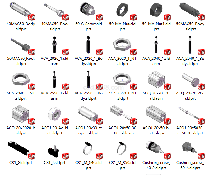 亚德客气缸标准件3D模型Solidworks格式格式产品包括的内容部分截图如下: