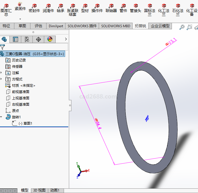 solidworks模型三菱O型圈-油压 密封圈模型 密封圈3D模型内容如下: