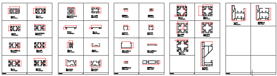 工业框架铝型材截面图DWG格式 工业铝型材截面图DWG格式内容如下: