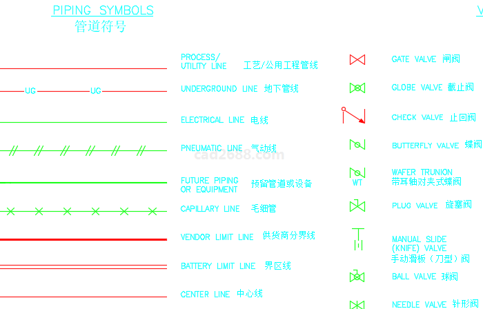 管道仪表流程图集 流程符号图集 管道符号流程图DWG格式内容截图如下: