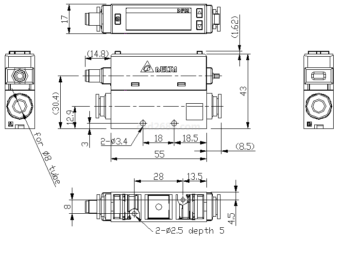 台达气体流量计DFM系列尺寸图DWG格式产品为0元购产品,注册会员后,即可免费购买0元购产品,在订单详细信息中点击下载链接,即可下载该图纸文件!