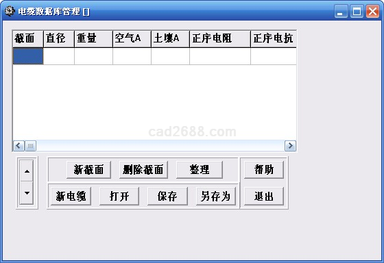 电缆数据库格式以文本文件形式存放,文件后缀“txt”,文件名要清楚地表示电缆的型号与简称;每行十四个数据,从左到右依次如下所示,行尾回车换行结束