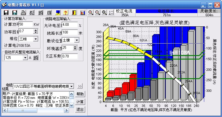软件的主要功能有计算功率、功率因素参数、相位选项、计算电注和开关电流等、电缆长度参数等等。。。