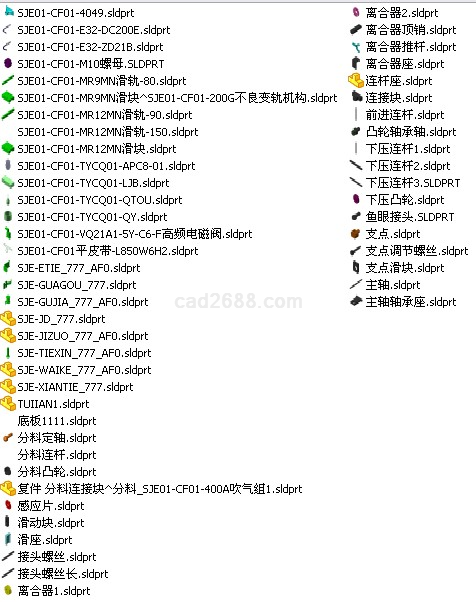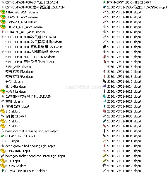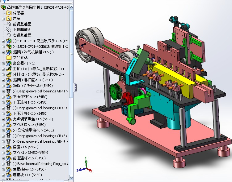 Solidworks纯凸轮结构之吹气除尘机包括的模型如下: