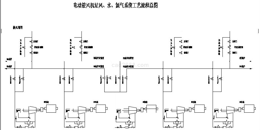 本产品为0元购产品,注册会员后,即可免费购买0元购产品下载!电动鼓风机站风、水、氮气系统工艺流程CAD总图如下: