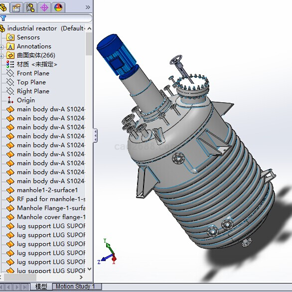 SolidWorks高压力工业反应器模型如下: