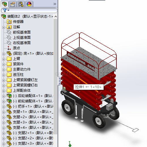 本产品为0元购产品,注册会员后,即可免费购买0元购产品下载!四轮移动式液压升降台SolidWorks模型如下: