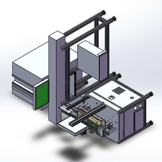 SOLIDWORKSLED元件包装检测一体机设备是电子行业成熟设备,设备采用上升篮子式自动送料。送料采用高精度丝杆,定位精度高。汽缸退出送料盘。输送带传送在相应工位上。 此设备均采用国外标准件,如SMC汽缸,MMISUMI皮带 轴承和丝杠等,SolidWroks建模共177个sldprt文件,模型为装配文件。包装检测一体机Solidworks模型如下: