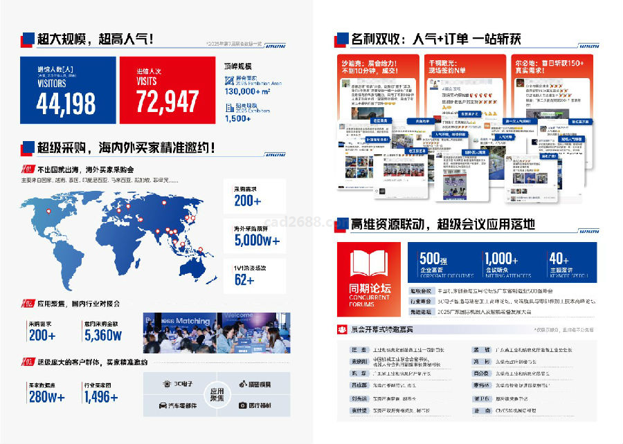 展览范围 金属切削机床 五轴、龙门、立式、卧式等加工中心,深孔钻、型材加工中心、组合机床、复合机床、雕铣机床、车床、磨床、钻床、铣床、等数控机床、智能制造… 金属成形机床 钣金及冲压设备 钣金机械、剪板机、折弯机、开槽机、开卷校平、上下料、冲床压力机、弯管机、表面处理、钣金辅助及周边设备、工厂数字化系统软件... 激光加工设备 激光平板切割、激光切管、激光器及元器件、通风环保安全、激光辅助设备… 连接与激光焊接工艺 激光焊接机、冲压连接、铆接、粘接及螺接、压接(无铆连接)、螺柱、电渣、超声波焊机、气焊设备、等离子焊机... 机床附件 主轴、丝杠、导轨、电机、转台、分度盘、动力头、刀塔刀库、防护罩、拖链、排屑机、导管、CNC系统、数字化制造... 磨削工量具 磨削工具 各型面加工刀具、组合刀具、非标刀具、刀具涂层、刀具材料、刀具附件、磨床机械、各类型磨具(固结、超硬材料等)、磨削材料、磨削配件及辅料... 检测设备 三坐标、光学影像测量仪、影像投影仪、激光干涉仪、量软件、系统、接触式、扫描式测量臂、X光检测设备、红外测试设备、各类千分尺、对刀仪、刀具测量仪、力学性能仪器、表面粗糙度仪... 工业自动化及机器人 工业机器人本体、人机协作机器人、机器人工作站、机械臂、运动控制系统、电气系统、传感及连接技术、气动液压执行元件、直线运动装置、链传动/带传动、装置及零部件....  联系我们 参展咨询:赵经理 13957428705 组团参观&媒体咨询:吴经理 18321746925 观展报名链接:https://m.expocme.cn/dg/getticket?src=Med&uis=zsh