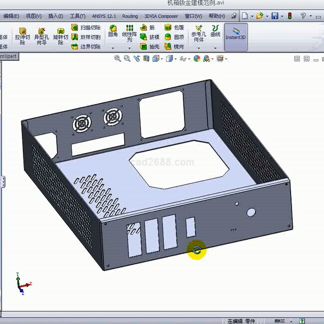 此视频包括源文件模型案例,Solidworks机箱钣金建模范例和视频截图如下: