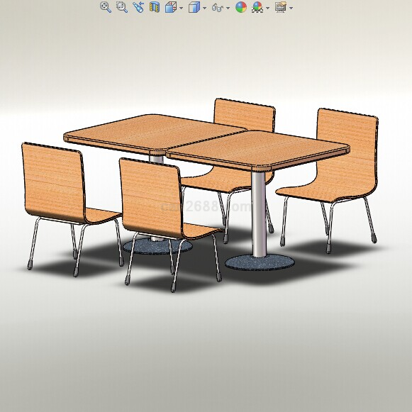 本产品为0元购产品,注册会员后,即可免费购买0元购产品下载!餐桌四椅Solidworks模型如下: