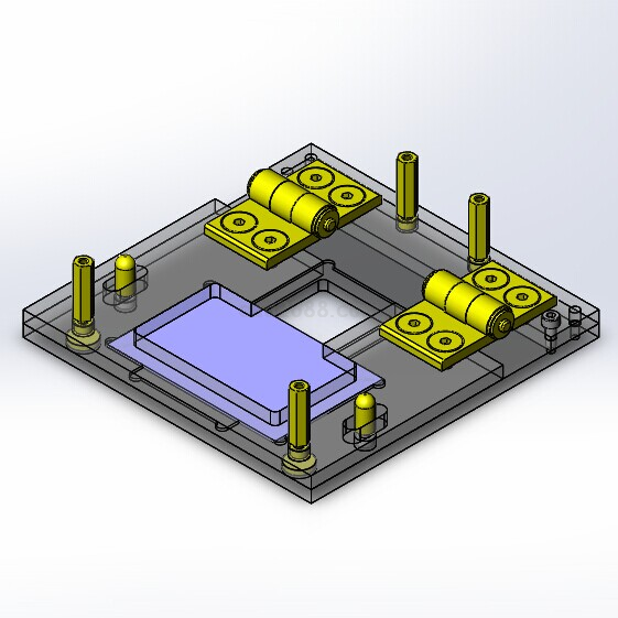 ;动作 夹紧并固定工件(电路板)后进行颠倒的焊接夹具。 环境·操作性 作业步骤 固定工件,并通过磁铁固定盖板。焊接夹具Solidworks模型如下: