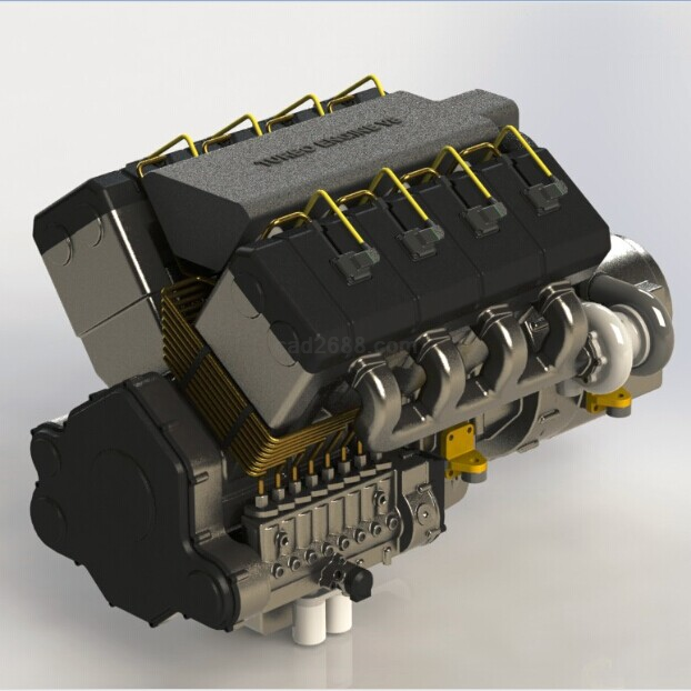 V8涡轮增压柴油引擎模型Solidworks格式模型如下: