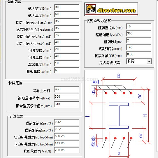 钢筋面积:Ast=760 mm2, Asb=400 mm2