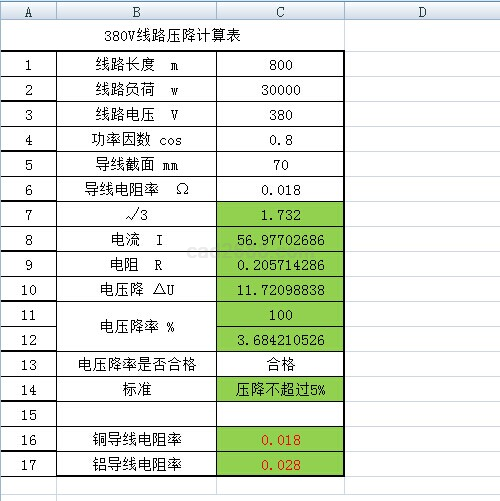 电缆压降计算内容如下: