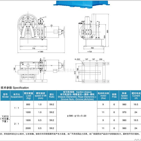 曳引机系列产品有交流变频、交流双速、客货梯曳引机、船(舰)用曳引机,强制式曳引机、防爆曳引机及永磁曳引机七大类。配套件有搁机架、导向轮、轿顶轮、对重轮、绳头组合件、限速器、安全钳、夹绳器等。