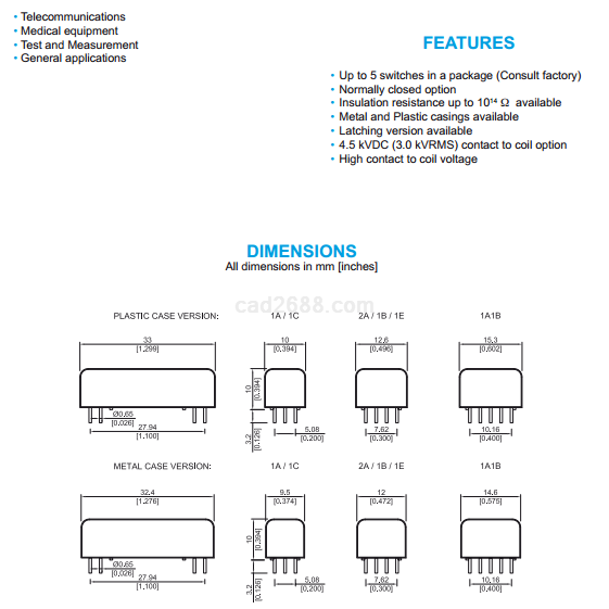 广泛应用于工业控制、电气设备制造、机械设备制造、测量、仪器仪表、通讯设备、工业设备、医疗器械、安全系统、家电、办公自动化、监测系统、高频切换、水流检测、气流检测、振动检测、倾斜检测、基站、塔放、TMA与TMB的高频信号切换、起重设备、汽车制造、机车信号、照明设备、电池检测设备、电容检测设备、直交流高压控制设备等领域。
