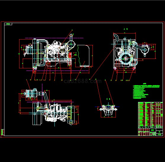 22吨挖掘机动力装置总图CAD图纸如下: