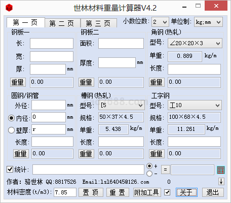 世林材料重量计算器V4.2如下: